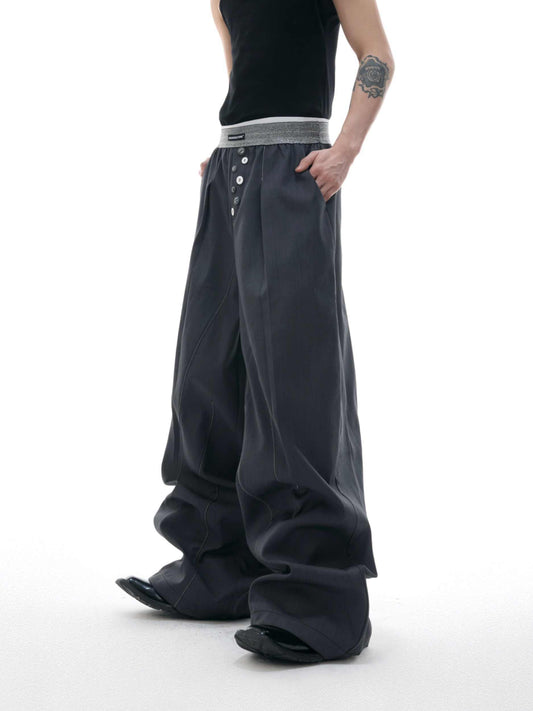 Drooping Straight Suit Pants Button Open Line Design Casual Pants