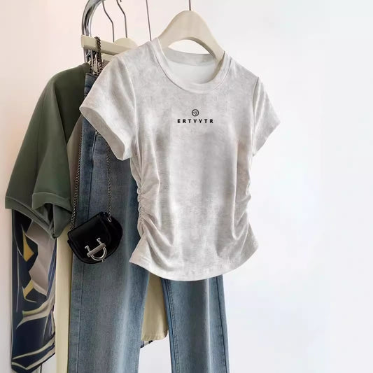 Spring And Summer Solid Color Top Waist Trimming Short Slim Fit Midriff-baring T-shirt