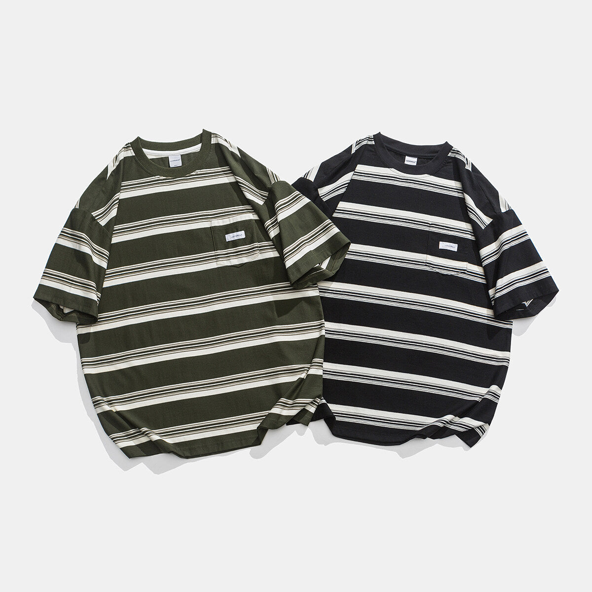 Casual Loose Striped Pocket Round Neck...